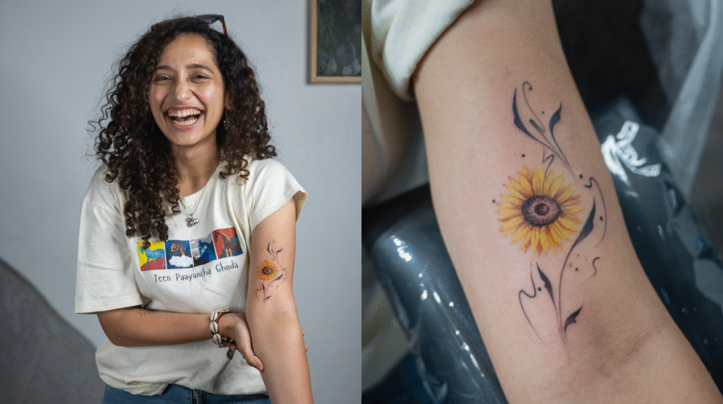 Today, Dyaneshwari says she loves her tattoo. She’s waiting for it to heal, waiting for the yellow to shine brighter, just like her.